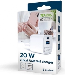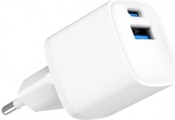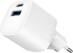 Denne universelle netoplader kombinerer porte USB‑C og USB‑A, så du nemt kan oplade et bredt udvalg af enheder – fra smartphones over trådløse hovedtelefoner til powerbanks. Effekten på 20 W giver hurtig genopladning, og teknologierne USB Power Delivery og QC 3.0 sikrer kompatibilitet med hurtigopladning fra mange mærker.