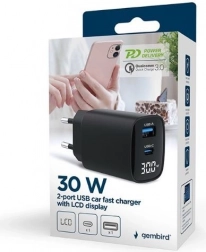 Understøttelse af USB PD og Quick Charge 3.0 sikrer hurtig energipåfyldning af kompatible enheder med op til 30 W. Det integrerede LCD‑display giver et klart overblik over opladningsforløbet, så du har styr på forbrug og batteristatus.