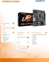 GIGABYTE H610M H V3 DDR4 er et pålideligt bundkort til hverdag og kontor-PC’er. Det understøtter Intel Core 14./13./12. generation (LGA 1700) og dual-channel DDR4-hukommelse. Takket være hybrid digital strømforsyning 4+1+1, kvalitetslydkomponenter og støjbeskyttelse leverer det stabil ydelse og ren lyd.