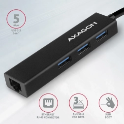 USB-hubben AXAGON HMA-GL3A er fremstillet af aluminium, hvilket giver fremragende mekanisk beskyttelse og et elegant design, der er modstandsdygtigt over for fingeraftryk. Det fastmonterede 20 cm USB-kabel gør hubben ideel til mobile enheder.