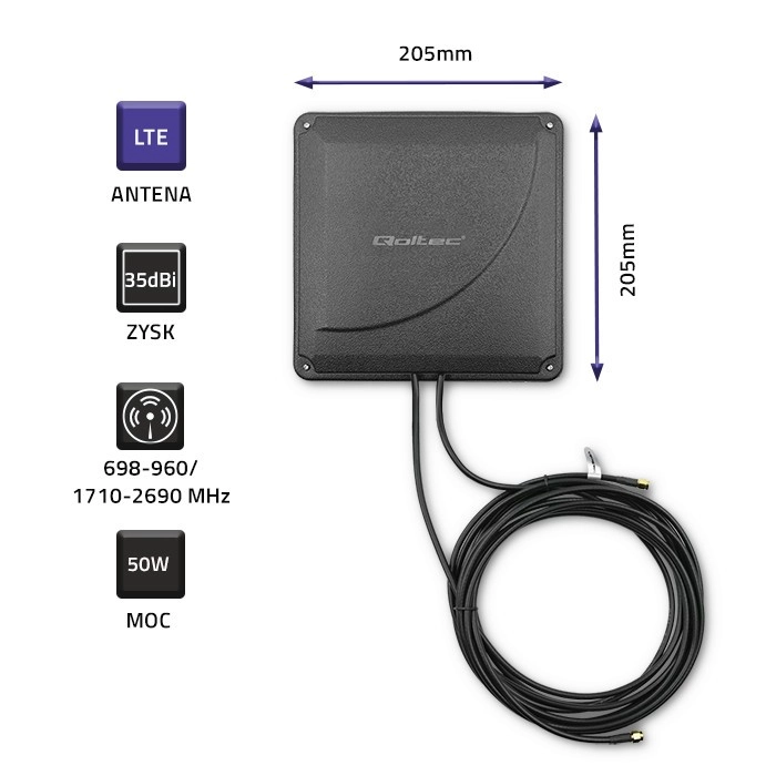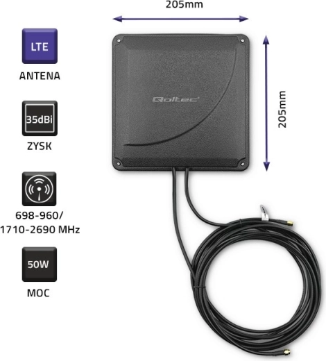 Qoltec 4G LTE Dual antenne bruger moderne MIMO-teknologi til at forbedre signalet og dermed kvaliteten af dataoverførsel. Med høj forstærkning på 35 dBi og støtte for 4G LTE-standarden er den ideel til både hjem og kontor.