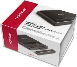 AXAGON CLONE MASTER 2 er en praktisk løsning til backup, migration og test af drev. Takket være den hurtige USB 3.2 Gen 2 (10Gbps) grænseflade og en reel throughput på op til omkring 1.000 MB/s klarer den hurtige dataoverførsler. NVMe M.2‑drevet indsættes uden skruer, 2.5"/3.5" SATA‑drev tilsluttes direkte til SATA‑porten på adapteren. Kloneretningen kan skiftes med en kontakt mellem NVMe M.2 → SATA og SATA → NVMe M.2.