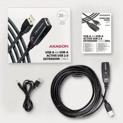Axagon USB 2.0 aktivt forlængerkabel på 20 meter er beregnet til at forlænge USB-forbindelsen mellem en computer og enheder som mus, tastatur, webkamera, printer eller scanner. Kablet indeholder en integreret repeater, der forstærker det overførte signal, hvilket gør det muligt at bruge kablet over større afstande.