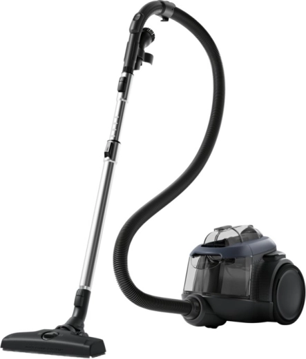 Electrolux Clean 600 EL61C3DB kombinerer effektiv cyklonisk støvseparering med ergonomisk design for behagelig daglig rengøring. Den stabile sugestyrke bevares selv med fuld beholder, og det kompakte kabinet gør det muligt at opbevare apparatet både lodret og vandret.