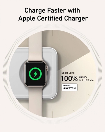 - Sammenklappeligt design, Hurtig opladning af Apple Watch