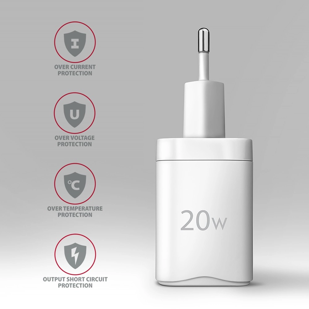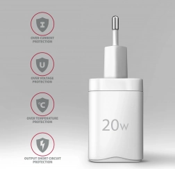 Opladeren understøtter 20W-opladning til iPhone 12, 13, 14 og 15 samt deres Pro- og Pro Max-modeller. Adapteren er også kompatibel med andre hurtigopladningsstandarder til Apple iPhone, iPad, Samsung, Huawei, Honor, Xiaomi.