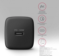 Denne lette og kompakte oplader bruger moderne Si (Super Silicon)-teknologi for højere effektivitet, mindre dimensioner og stabil, sikker opladning. Den enkeltstående USB‑C-port leverer op til 30W, så den pålideligt kan oplade smartphones, tablets og udvalgte ultrabooks.