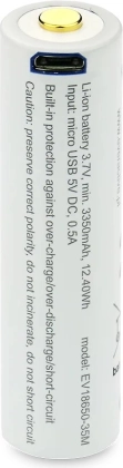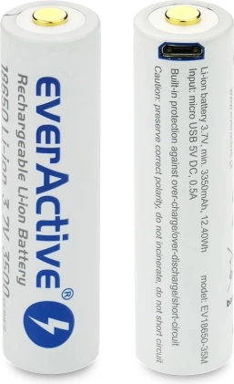 EverActive 18650 akkumulatoren med en kapacitet på 3500 mAh er ideel til professionel brug, takket være den integrerede micro USB til direkte opladning. Denne akkumulator er udstyret med en original Samsung 35E-celle og tilbyder elektronisk PCM-beskyttelse, som beskytter mod overdreven afladning, overopladning og kortslutning.