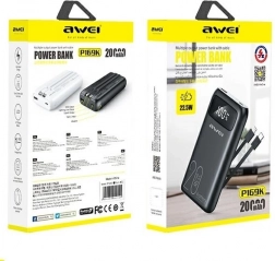 Har du brug for strøm, når som helst og hvor som helst? AWEI P169K er en kraftig powerbank med 20000 mAh, som kan oplade din smartphone, dine høretelefoner eller din tablet flere gange. Takket være hurtigopladning op til 22,5 W fylder du hurtigt og effektivt strøm på via de universelle USB- og USB‑C‑porte.