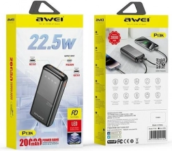 Powerbanken Awei P13K er en pålidelig energikilde til din smartphone, tablet eller andet tilbehør. Den høje kapacitet på 20.000 mAh giver flere opladninger, og understøttelse af hurtigopladning 22,5 W speeder batteripåfyldningen op, uanset om du bruger iPhone eller en Android‑telefon.