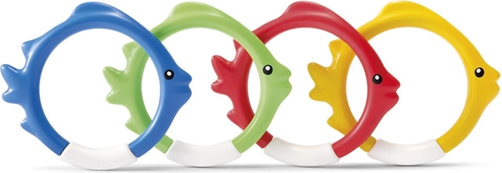 Sættet af IN TEX dykkeringe formet som fisk er et ideelt redskab til legende indlæring af dykning. Takket være de markante farver og den stabile opstilling på poolbunden finder børnene nemt målet og træner lystbetonet både vejrholdning og orientering under vand.