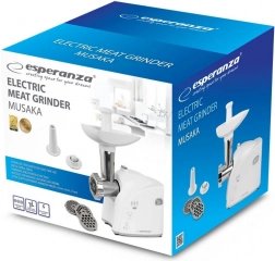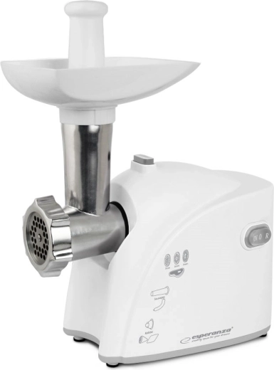 Leder du efter en pålidelig kødhakker til hjemmekøkkenet? ESPERANZA Musaka kombinerer høj ydeevne med enkel betjening og alsidighed. Takket være den holdbare kniv i rustfrit stål og den metalbaserede snegl klarer den både kød og andre råvarer, mens de tre skiver gør det muligt præcist at vælge den ønskede grovhed.