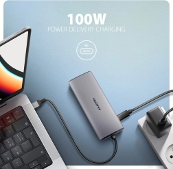 Power Delivery‑teknologi muliggør opladning af bærbare computere op til 100 W. HDMI‑udgangen tilbyder opløsning op til 4K/60 Hz, HDR‑understøttelse og højfrekvente tilstande til spil som 2K/120 Hz eller Full HD/240 Hz. Husk, at for korrekt videoudgang skal din bærbare understøtte DisplayPort‑tilstand (DP Alt Mode) eller have en Thunderbolt 3, 4 eller nyere port.