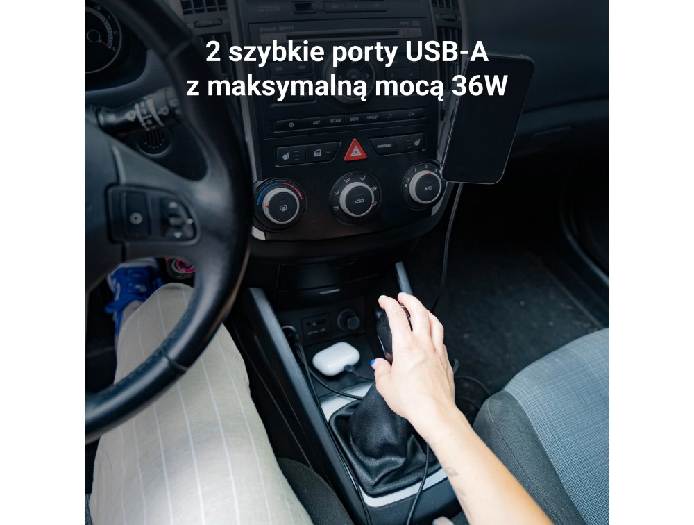 To USB-A-porte gør det muligt at oplade telefon og navigation på samme tid – uden kompromis med hastigheden takket være samlet effekt på 36 W.