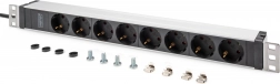Denne 19" PDU-skinne er designet til sikker og effektiv strømforsyning i rackskabe. Takket være det robuste aluminiumschassis og 1U-udformningen sparer den plads og leverer samtidig stabil energidistribution til servere, switches og andet netværksudstyr.