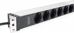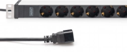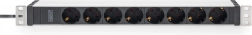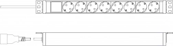Indgangsstikket IEC-60320 C20 muliggør direkte tilslutning til UPS, mens otte Schuko-udtag med 35° vinkling gør det nemt at tilslutte selv større strømforsyninger. Det to meter lange strømkabel forenkler placeringen i rackskabet og optimerer kabelføringen.
