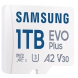 Udvid lagerpladsen på din telefon, dit kamera eller din konsol med microSD-kortet SAMSUNG EVO Plus 1 TB med læsehastighed op til 160 MB/s, klasserne U3, A2 og V30 for flydende 4K-video og hurtig appydelse. Det tilbyder bred kompatibilitet, 6-i-1 robusthed mod vand, temperaturer, røntgen, magneter, fald og slitage, og i pakken følger en fuldstørrelses SD-adapter med.