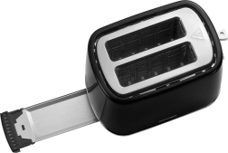 Den udtagelige krummebakke gør rengøringen hurtig, og den høje løftefunktion muliggør sikker udtagning selv af mindre stykker brød uden risiko for forbrænding.