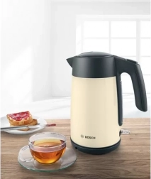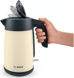 Oplev bekvemmelighed med denne Bosch elkedel, som med vandstandindikator gør det muligt at koge præcis den mængde vand, du har brug for. Kedlens ergonomiske form sikrer nem hældning uden spild, hvilket du vil sætte pris på i daglig brug.