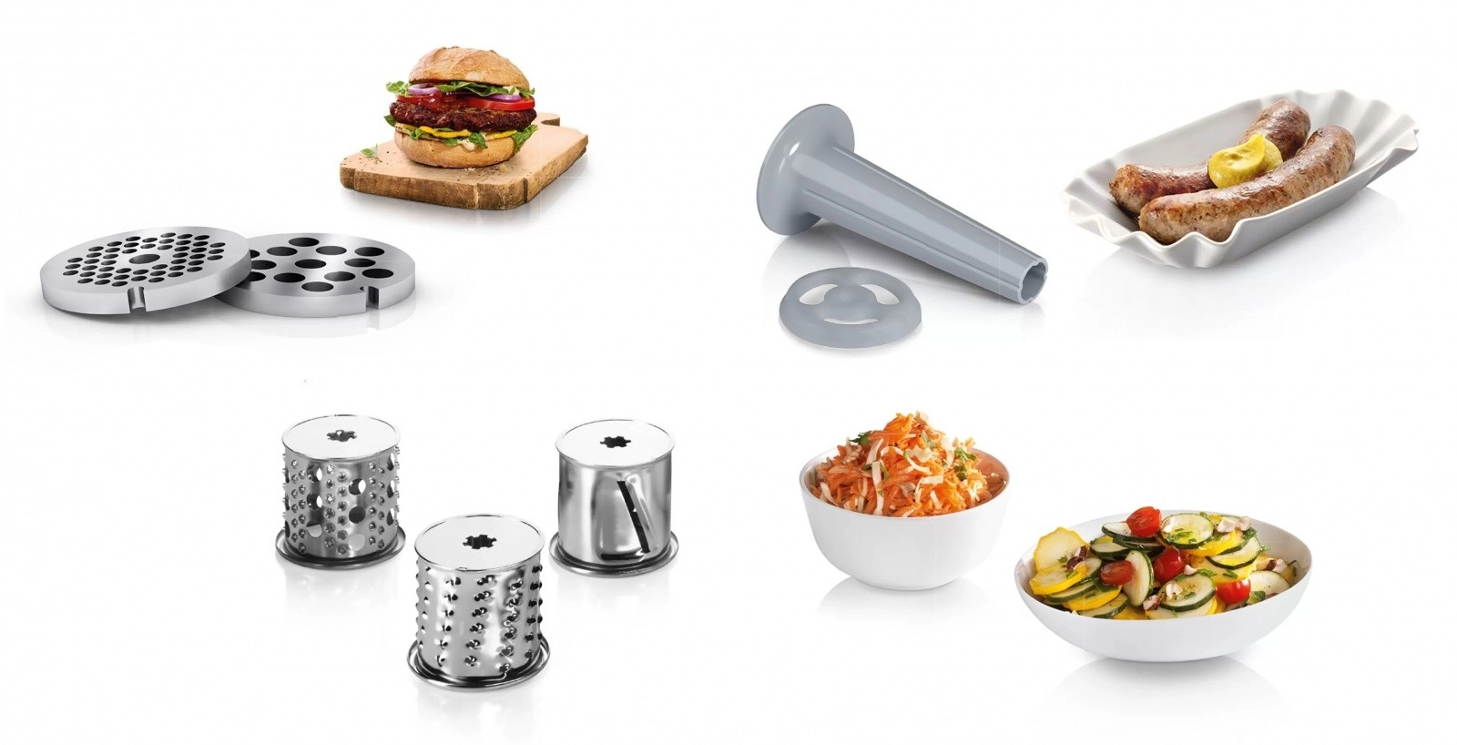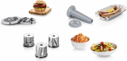 Ud over at kværne kød kan kværnen også rive og skære forskellige ingredienser som grøntsager, oste, frugt eller chokolade.