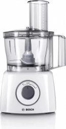 Køkkenmaskinen Bosch Multitalent 3 er den ideelle hjælper for alle, der elsker at lave mad og bage. Takket være sin kompakte størrelse og funktionelle design tilbyder den bekvem opbevaring af alt tilbehør inde i skålen. Særlige markeringer muliggør nem og hurtig montering af tilbehør, som også tåler opvaskemaskine, hvilket sikrer grundig rengøring uden besvær.