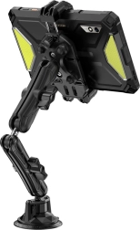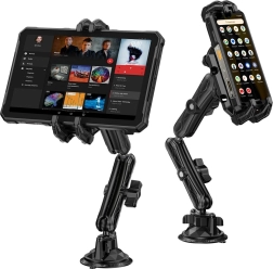 Kompatibel med tablets og smartphones op til 8 tommer takket være det drejelige led og den teleskopiske arm.