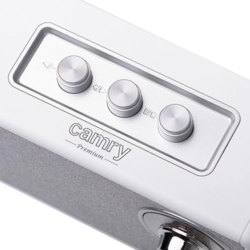 Højttaleren er også udstyret med en analog FM-frekvensvælger, som giver dig mulighed for at finde radiostationer på traditionel vis. TWS-funktionen gør det muligt at forbinde to højttalere, som fungerer som én, og dermed leverer en fyldigere og mere rumlig lyd.