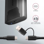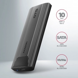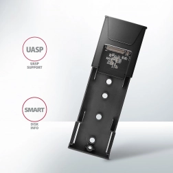 AXAGON-kabinettet kendetegnes ved et hurtigt USB 3.2 Gen 2-interface med overførselshastigheder op til 10 Gb/s, støtte for moderne funktioner som UASP, TRIM samt mulighed for at læse S.M.A.R.T.-oplysninger. Det er egnet til SSD-kort i længderne 30, 42, 60 og 80 mm.