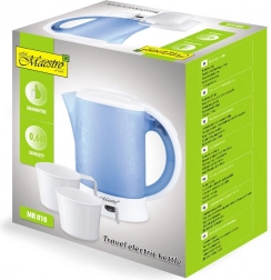 Kedlen har en praktisk, manuel åbning af låget, og ledningslængden er 54 cm. Produktet vejer 560 g, og dimensionerne er 16,5 x 10,6 x 15,5 cm, hvilket gør det praktisk og let at opbevare. Rejsekedel Maestro MR-010 er et fremragende valg for alle, der søger pålideligt og praktisk udstyr til rejsen.