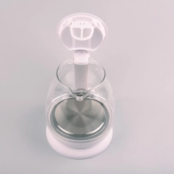 Nem adgang til kedlens indre sikres af et knapbetjent låg, og en vandstandsmåler gør det let at kontrollere mængden af vand i beholderen. Blå baggrundsbelysning indikerer, at enheden er i drift, og giver et moderne udtryk.