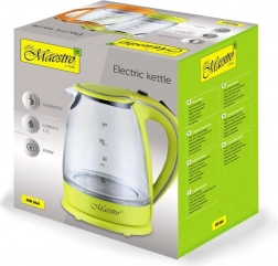 Den elektriske kedel Maestro med en effekt på 2000 W kombinerer elegance med funktionalitet. Glaskroppen sammen med det holdbare plastikgreb sikrer let håndtering og lang levetid. Kedlen har desuden et kalkfilter, der garanterer rent vand og beskyttelse mod aflejringer.