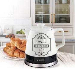 Den elegante keramiske elkedel MAESTRO PARIS MAISON bringer både stil og funktionalitet til dit køkken. Det keramiske korpus holder bedre på varmen, det skjulte varmelegeme gør rengøringen lettere, og den 360° roterende base med belyst afbryder sikrer komfortabel brug hver dag.