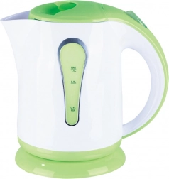 Den stilfulde kedel i hvid-grøn udførelse er lavet af kvalitetsplast, der tåler høje temperaturer. Takket være det ergonomiske håndtag, knap til åbning af låget og vandstandsmåler er betjeningen altid enkel og intuitiv. Driftsindikatoren viser tydeligt, når kedlen arbejder.