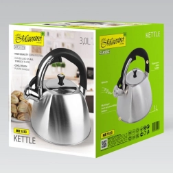 Tekanden Maestro har et varmebestandigt håndtag for komfort og sikkerhed ved håndtering. Den praktiske fløjte signalerer, når vandet koger. Et aftageligt låg gør det nemt at hælde vand og rengøre.