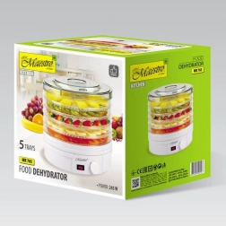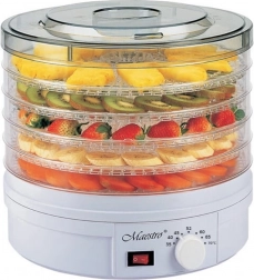 Madtørreren Maestro er udstyret med 5 bakker med en diameter på 32 cm, som gør det muligt at tørre store mængder råvarer på én gang.