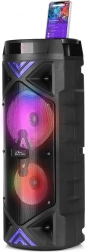 Karaoke-entusiaster vil værdsætte mikrofonindgang 6,3 mm med justerbar mikrofonlydstyrke og ECHO-effekt. Med fjernbetjeningen har du alle funktioner ved hånden uden at gå hen til højttaleren. Farverige LED-effekter sætter den rette stemning til enhver fest.