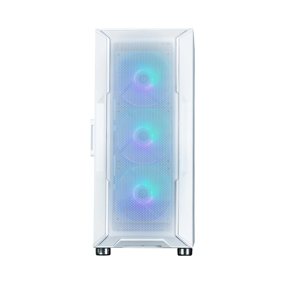 Oplev den perfekte balance mellem design og ydeevne. Det forreste meshpanel og fire ARGB 120 mm blæsere (3× front, 1× bag) sikrer maksimal luftgennemstrømning og imponerende lyseffekter. Det premium sidepanel i hærdet glas giver panoramavisning af dine komponenter.