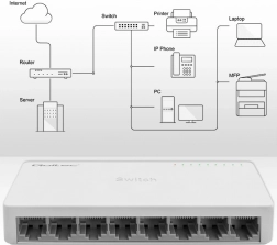 Pålidelig og effektiv Qoltec-netværksswitch med 8 RJ45-porte sikrer stabil og hurtig forbindelse til både hjemmenetværk og virksomhed. Takket være gigabithastigheder op til 1000 Mbps, støtte for IEEE 802.3x og Plug & Play-installation leverer den glat dataoverførsel uden unødvendig konfiguration. Skærmede 8-pin porte, LED-indikatorer og effektiv varmeafledning garanterer driftssikkerhed selv under høj belastning.