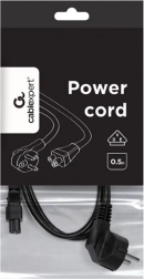 Kompakt strømkabel med C5 (kløver) og Schuko (CEE 7/7) stik, længde 0,5 m. Ideelt til bærbare computere, strømforsyninger og små apparater. Har VDE-certificering, formstøbte stik og en robust PVC-kappe for sikker og pålidelig strømforsyning.