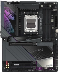 Bundkortet understøtter AMD Ryzen 9000/8000/7000‑serien, fire DDR5-slots med AMD EXPO-profiler og tilbyder lynhurtig lagring – 4× M.2, hvoraf 3× PCIe 5.0 x4. Moderne tilslutning omfatter 2× USB4 Type‑C med DP‑Alt, HDMI, 5GbE LAN og Wi‑Fi 7 med højforstærkende retningsbestemt antenne.