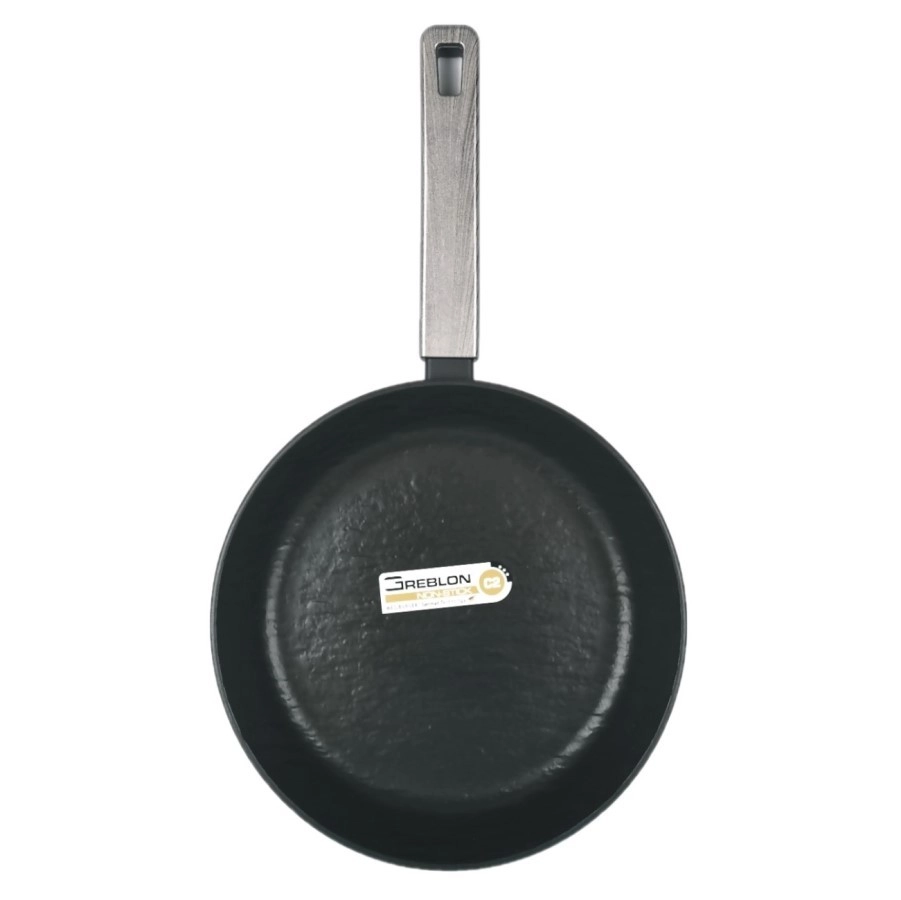 Det praktiske skridsikre håndtag med træimitation øger sikkerheden og komforten ved håndtering. Takket være kompatibilitet med alle typer kogeplader inklusive induktion er panden et alsidigt valg til moderne hjem. Efter madlavning kan du sætte den i opvaskemaskinen og spare tid.