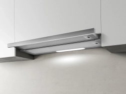Teleskopisk emhætte Elite 14 skjules helt i skabet, når den ikke er i brug, hvilket sparer plads og bevarer køkkenets rene design. Aktiveringen er enkel – træk blot frontpanelet ud og vælg den ønskede hastighed. Denne model er lavet af højkvalitets inox-stål, beskyttet af en specialbelægning. Intuitive knapper gør det let at skifte driftstilstand, og halogenbelysningen giver rigeligt lys under madlavning.