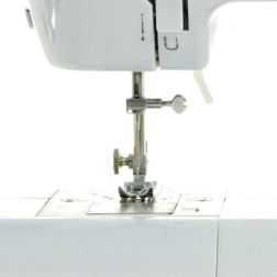 Syning med Lena 2019 kan udføres selv uden fodpedal takket være en skyder på maskinens kabinet. Den aktiverer langsom eller lidt hurtigere automatisk syning – det betyder, at maskinen syr selv. Denne tilstand er lettere for begyndere, fordi den ikke kræver hånd–fod-koordination. Symaskinen Lena 2019 tilbyder også mulighed for at tilslutte en minipedal og dermed aktivere fodbetjening. Derfor er den en ideel introduktion til syning, hvor man gradvist vænner sig til en “voksen” maskine.