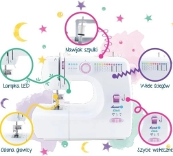 Mini symaskinen Łucznik Lena 2019 er skabt til børn, der drømmer om deres egen symaskine. Den har en særlig fingerbeskytter, som omslutter nålen fra alle sider. Det gør brugen maksimal sikker, så du som forælder kan være tryg ved dit barns små fingre.