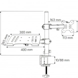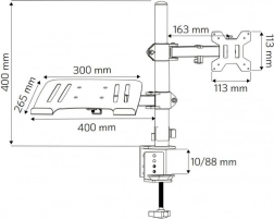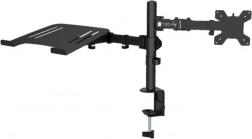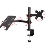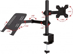 Holderen til skærm og bærbar er ideel til moderne kontormiljøer. Den giver et bredt udvalg af indstillinger, inklusive vip på ±45° for både skærm og bærbarhylde, drejning af skærmen på ±180° og bærbarhylden på ±120°, samt mulighed for at rotere skærmen 360° (PIVOT). Højden kan justeres langs en 400 mm vertikal søjle efter dine behov.
