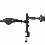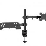 Den fuldt justerbare arm med dobbeltled og VESA-kompatibilitet giver ideel tilpasning af positionen for både skærm og bærbar.