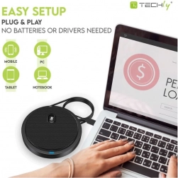 Kompakt konferencemikrofon med USB 2.0, der tilbyder 360° surround-optagelse, mute-knap og plug and play uden driverinstallation. Takket være høj følsomhed opfanger den selv fine stemmenuancer op til ca. 3 meters afstand, ideel til onlinemøder, fjernundervisning, videoopkald og mødelokaler i virksomheder.