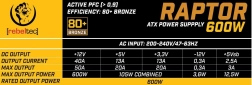 Strømforsyningen Raptor bringer på markedet en fremragende ydeevnereserve takket være avanceret design og højkvalitetskomponenter. På +12V skinnen genererer den effektivt 600W for at forsyne CPU og grafikkort, mens den for øvrige linjer leverer udvidet ydeevne op til i alt 721W.<3/p>