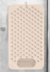 RUHHY-måtten kombinerer skridsikker beskyttelse med afslappende fodmassage. Et tæt net af sugekopper holder sikkert på glatte overflader, mens den teksturerede overflade med knopper blidt masserer fødderne og øger komforten ved den daglige hygiejne.