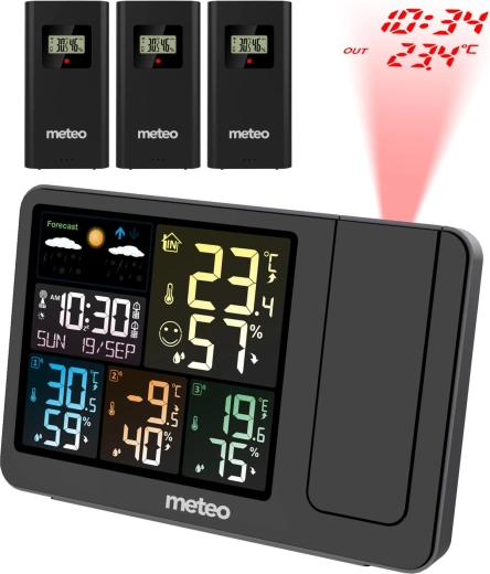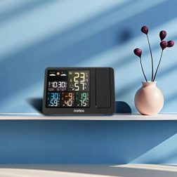 Denne vejrstation er udstyret med en laserprojektor, der viser aktuel tid og temperatur på væg eller loft. Den er ideel til hurtig og nem aflæsning uden at tænde lyset.